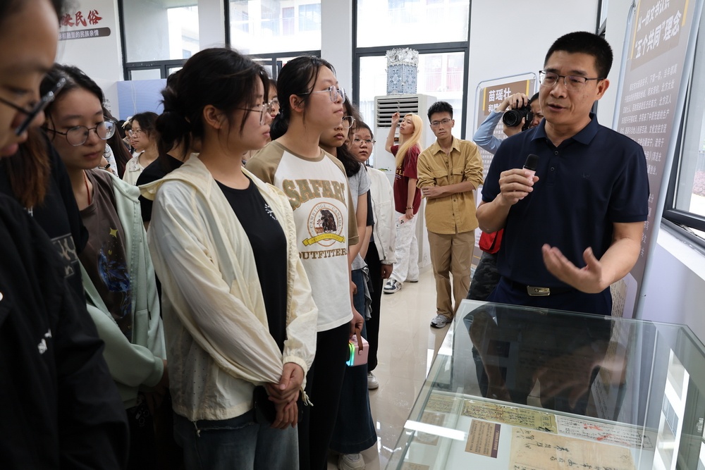 “旧的契约文书,在当代还有法律效力吗?”展馆内,同学们带着求知疑问踊跃提问。面对师生们高涨的探索热情,韦如柱临时担任现场解说员,细致答疑解惑,为大家厘清文书古籍的当代效力界定,带领师生沉浸式探寻百年文书背后的历史密码。