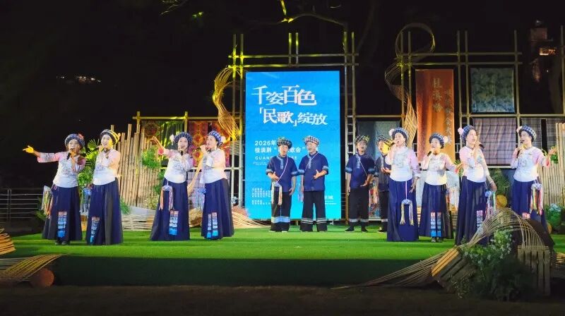 4月25日晚,梵木·百色水岸城环形草坪舞台歌声嘹亮、座无虚席。“千姿百色 民歌绽放”2026年桂滇黔“呗侬歌会”大赛在此激情唱响。来自广西、云南、贵州三省(区)的18支民歌队伍同台竞技、以歌会友,为现场观众献上了一场视听盛宴。