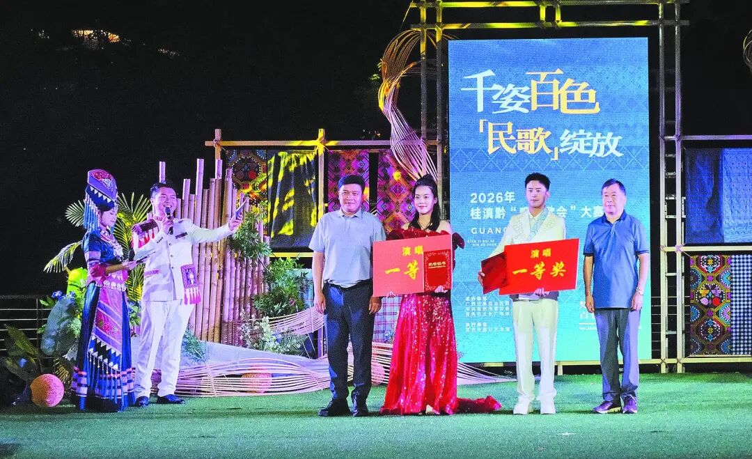 舞台上,选手们身着绚丽的民族服饰,以原生态山歌、原创民歌、传统改编曲目倾情献唱,唱腔或高亢嘹亮、或温婉深情,既有古老民歌的醇厚韵味,又有新时代创作的清新气息,全面展现了桂滇黔丰富多彩的民族音乐资源与深厚文化底蕴,赢得现场观众阵阵喝彩与热烈掌声。