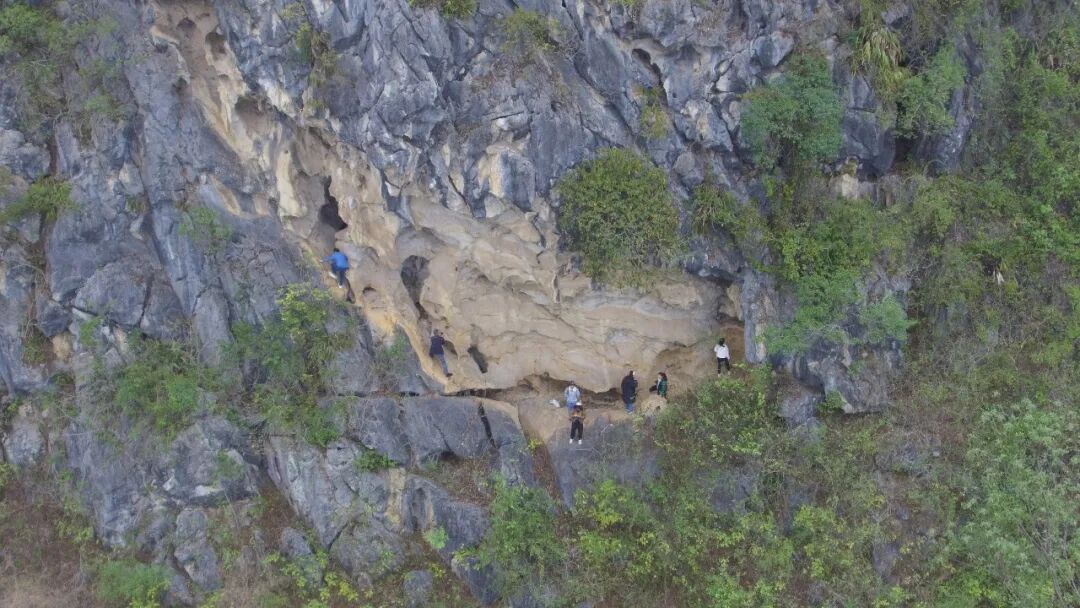 ❖广西民族博物馆科研人员实地勘察岩画。