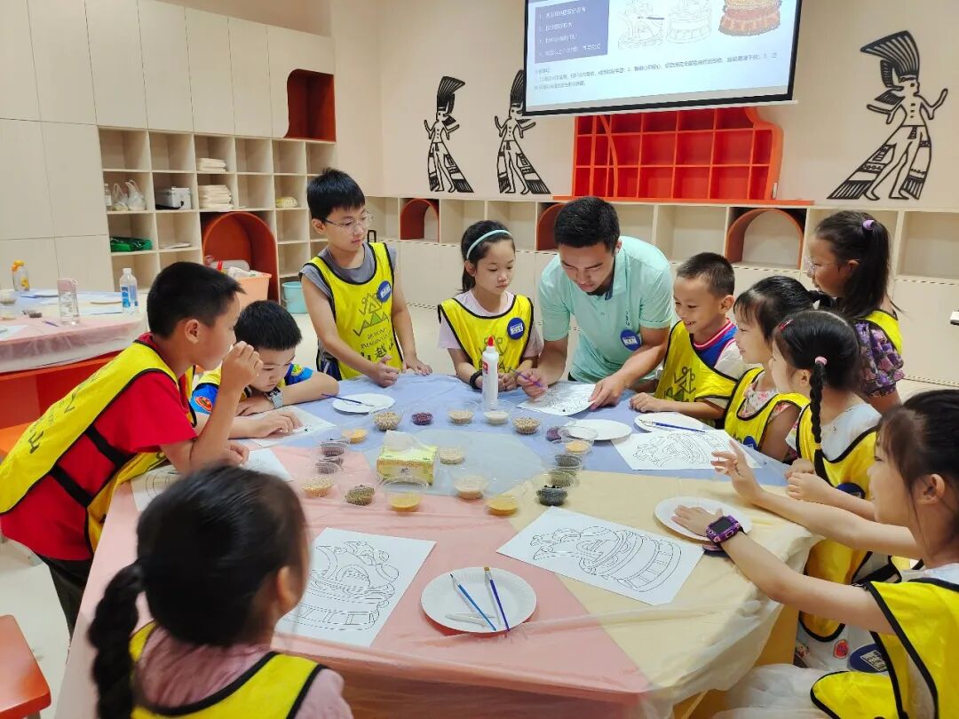 ❖同学们在研学课程中学习非遗五谷画。