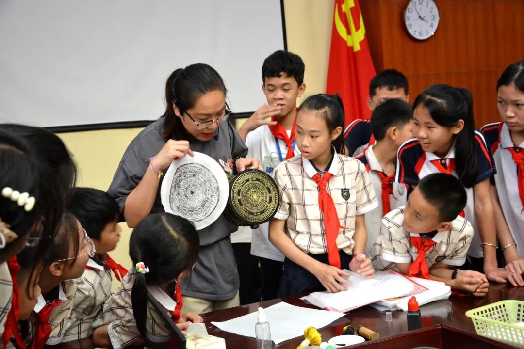 ❖研学老师带领同学们体验铜鼓拓印。