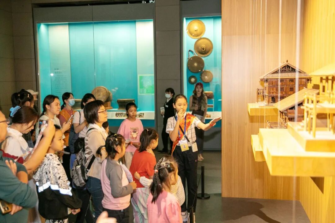 ❖广西民族博物馆小小讲解员为观众讲解。