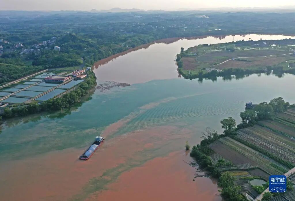 ▲广西南宁市江南区江西镇三江口水域,左江与右江水在交汇处清浊交融。 新华社记者 周华摄