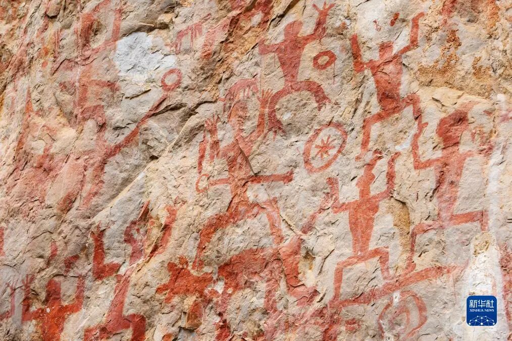 ▲花山岩画的局部。 新华社记者 费茂华 摄