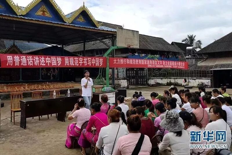 ▲在拉祜族聚居的云南省西双版纳傣族自治州勐海县勐海镇勐翁村,大学生志愿者向村民们宣讲学好用好普通话的重要意义。