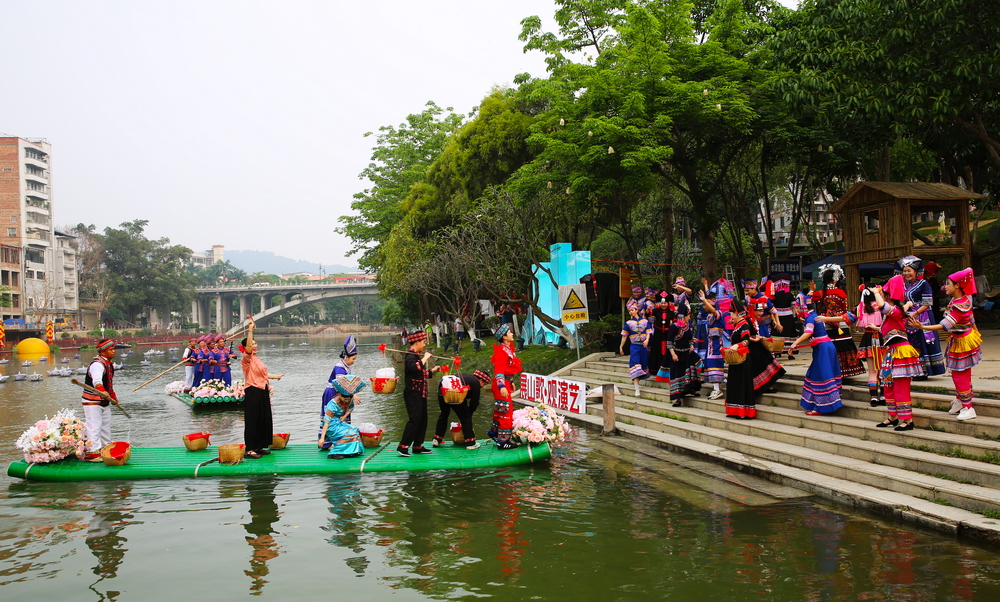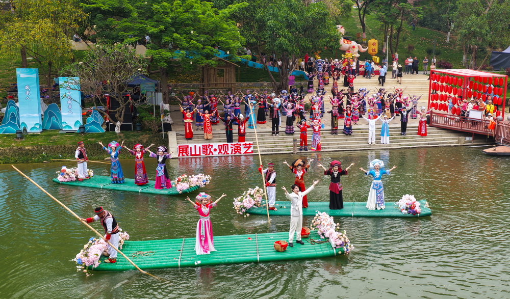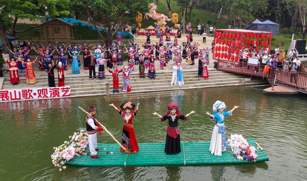 2026年广西三月三期间,百色市以“和美红城·千姿百色”为主题,精心推出各族群众大联欢系列文旅活动。在右江区澄碧河搭建“楼前歌台+水上飘歌+两岸和鸣”的立体对歌空间,连续四天每日分时段开展山歌对唱活动,让游客置身山水画卷,沉浸式感受百色的独特魅力。覃蔚峰 摄